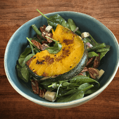Roasted pumpkin • Green beans • Spinach • Pecans • Balsamic raisins • Red onion • Gallo feta or Gallo blue cheese