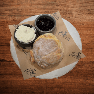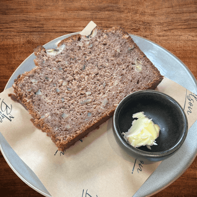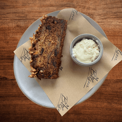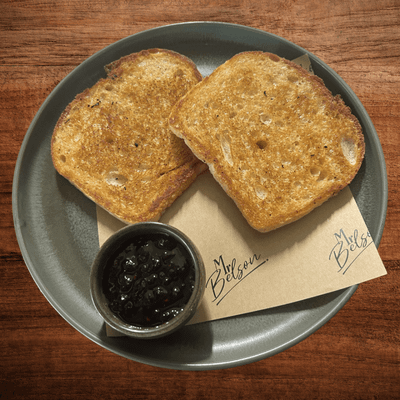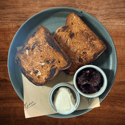 Thick raisin toast • Vanilla cream cheese • House fruit compote
