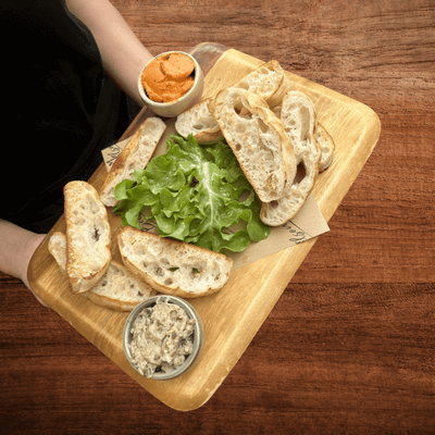 Duo of house dips • Turkish bread • See our staff to find out today's dips