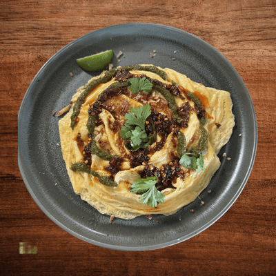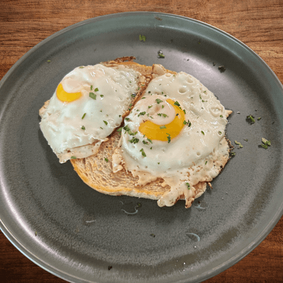 Scrambled eggs • Crispy chilli oil • Green dressing • Sourdough • Fried shallots