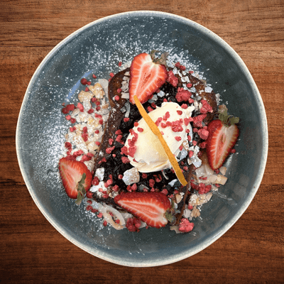Vanilla cream cheese • Fruit Compote • Toasted Coconut • Fresh berries